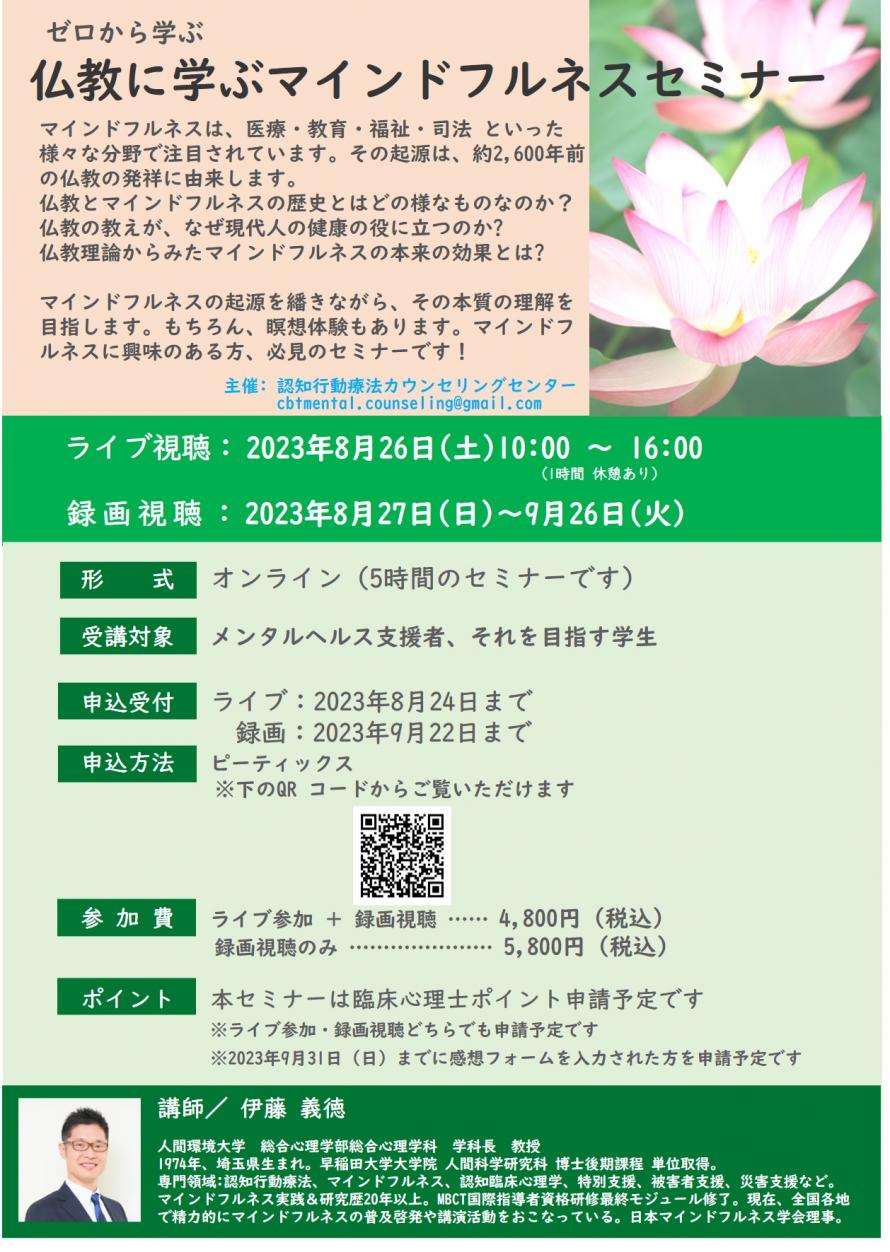 マインドフルネスの起源を繙きながら、その本質の理解を目指します。もちろん、瞑想体験もあります。マインドフルネスに興味のある方、必見のセミナーです!