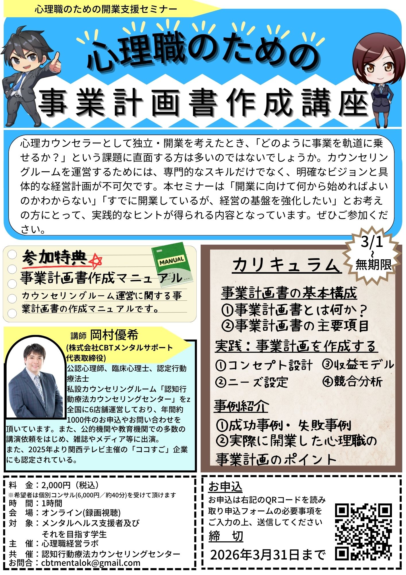 【心理職のための開業支援セミナー】心理職のための事業計画書作成講座